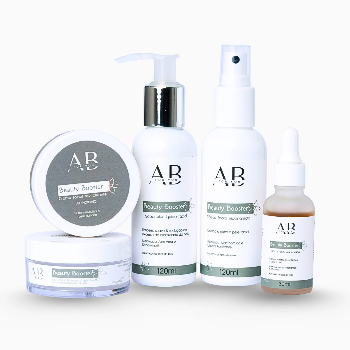 Kit Completo de Skin Care Beauty Booster: 5 produtos para limpeza, hidratação e revitalização facial com ativos naturais e resultados visíveis.